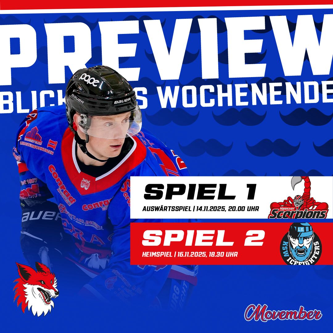 Endlich geht es weiter! Die Füchse bekommen es mit 2 starken Gegnern zu tun! Wir haben Lust auf Checks, Tore und Emotionen!