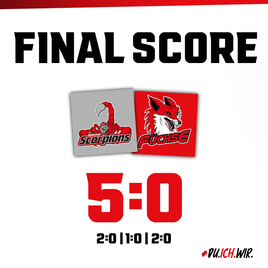 Die Füchse müssen sich den Scorpions am Ende deutlich mit 0:5 geschlagen geben. Nach einem frühen 0:2-Rückstand im ersten Drittel steigerten sich die Füchse zwar offensiv, doch die Scorpions blieben effizient und bauten ihre Führung konsequent aus.