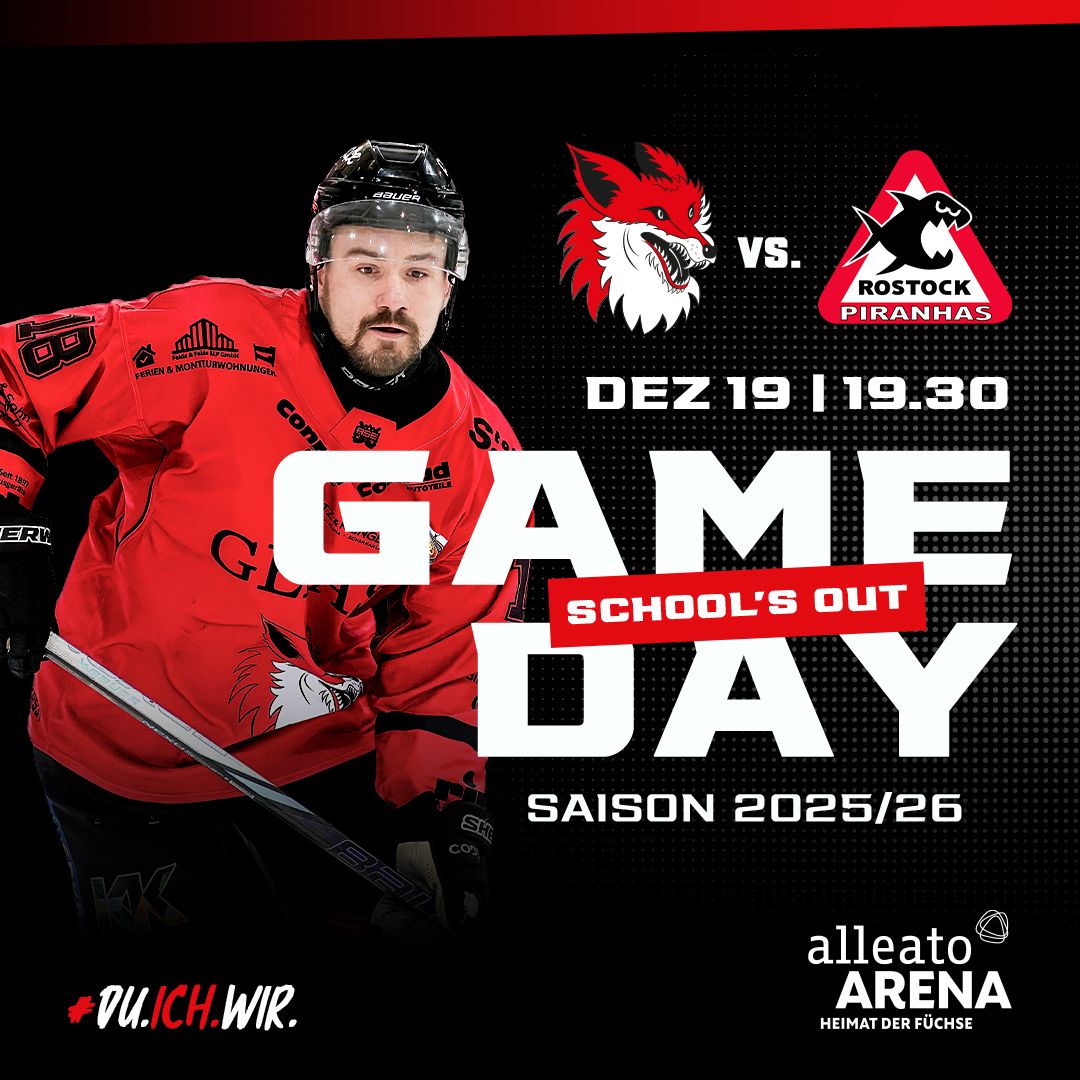 Nach 2 Niederlagen wollen die Füchse wieder in die Erfolgsspur – zu Gast die Raubfische aus Rostock.