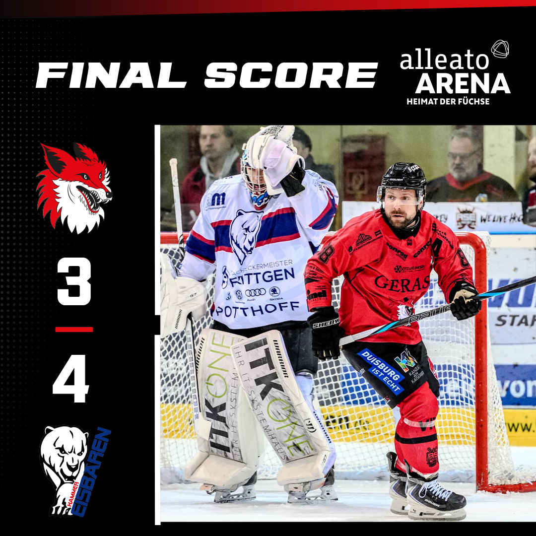 Im Schlussdrittel drängen die Füchse weiter nach vorne und erspielen sich zahlreiche Chancen. Doch eine doppelte Unterzahl nutzen die Gäste schließlich eiskalt aus und besiegeln damit die Niederlage im 2000. Spiel der Füchse.