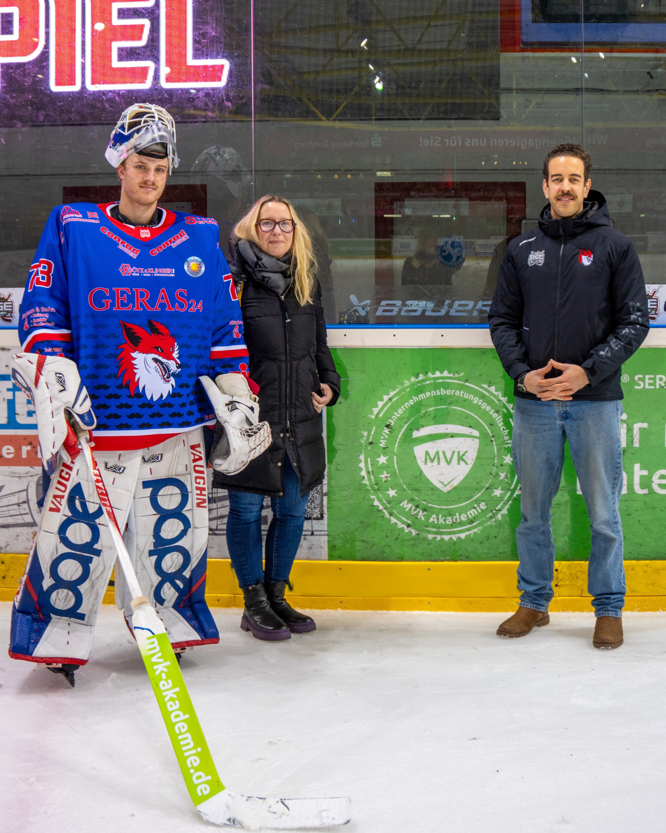 Neben der fachlichen Unterstützung präsentiert sich MVK auch sichtbar als Business-Partner mit Bandenwerbung in der Eishalle und unterstreicht so ihr Engagement für den Eishockeysport in Duisburg.