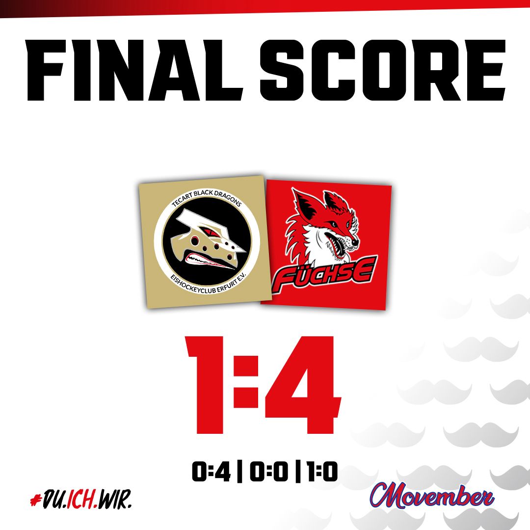 Über die gesamten 60 Minuten treten die Füchse in der Erfurter Kartoffelhalle als klar dominierende Mannschaft auf – der Gegentreffer zum 1:4 fiel dabei mehr oder weniger aus dem Nichts.