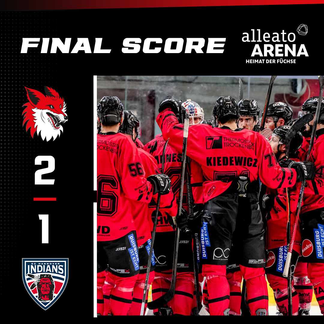 Die Füchse starten druckvoll und gehen durch Philip Kuschel mit 1:0 in die erste Pause. Im zweiten Drittel erhöht Martin Schymainski auf 2:0, bevor Hannover auf 1:2 verkürzt. Das Schlussdrittel hat es in einem über 60 Minuten intensiven Fight noch einmal in sich. Chancen auf beiden Seiten, doch wir verteidigen stark und bringen die Führung verdient über die Zeit. 🔥💪🏻
