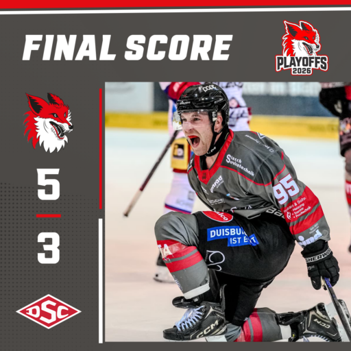 Zolmanis eröffnete die Partie früh für unsere Füchse, Sanche stellte im ersten Drittel auf 2:1. Im Schlussabschnitt war dann Popoff mit einem Doppelpack und dem Empty-Net-Treffer der entscheidende Mann auf dem Eis.